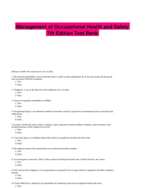 Management of Occupational Health and Safety by Gatien, Kelloway, and Francis is a comprehensive healthcare textbook available in various editions. This textbook covers essential topics in occupational health and safety, providing valuable insights for students and professionals. Access supporting materials like test banks, exam questions, and solution manuals to enhance your learning experience.
