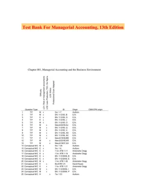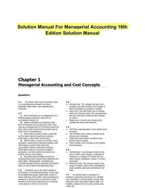 Enhance your understanding of managerial accounting with the comprehensive textbook by Ray Garrison, Eric Noreen, and Peter Brewer. Dive into key concepts with Class Notes and Lecture Notes, test your knowledge with Exam Questions, and solidify your learning with End of Chapter Solutions. Access a range of supporting materials to excel in your accounting studies.